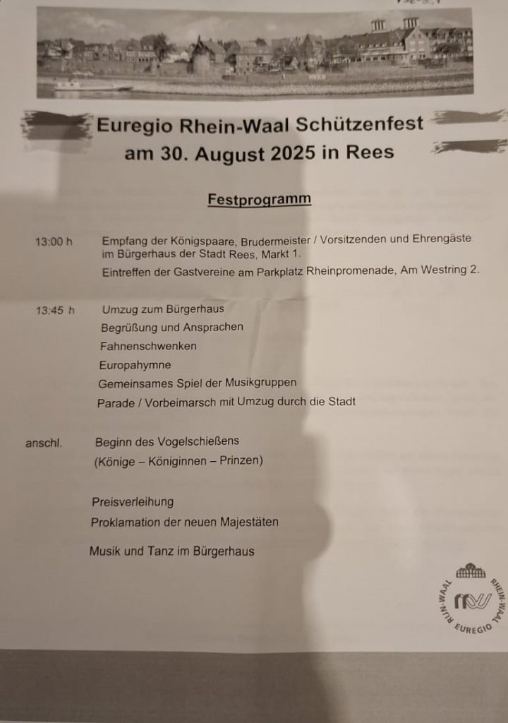 Zudem ist dieses Jahr wieder Kaiserschießen an dem alle alten und aktuellen Könige teilnehmen dürfen. Zur Info, wer mehrmals König ist, darf auch mehrmals mitschießen. Die Schieß Reihenfolge richtet sich nach den Jahren, wann man König war. Jeder König erhält auch noch eine gesonderte Einladung.
